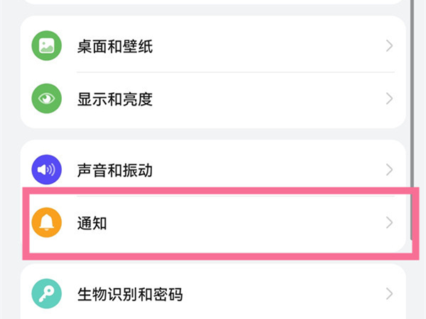 1、在手机设置菜单中点击【通知】。