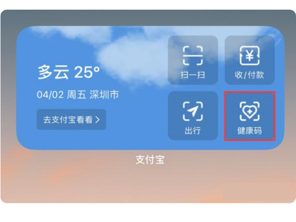 3、点击桌面组件中的健康码即可快速打开健康码。
