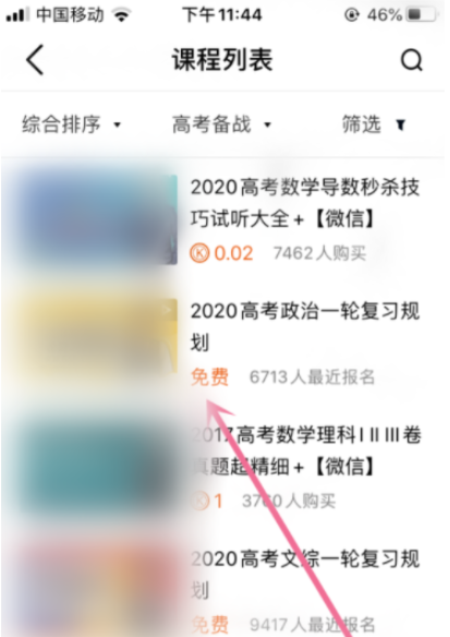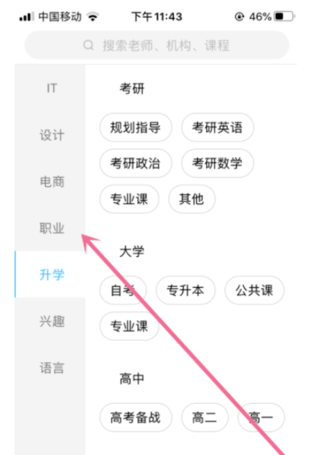随后选择需要学习的课程类型