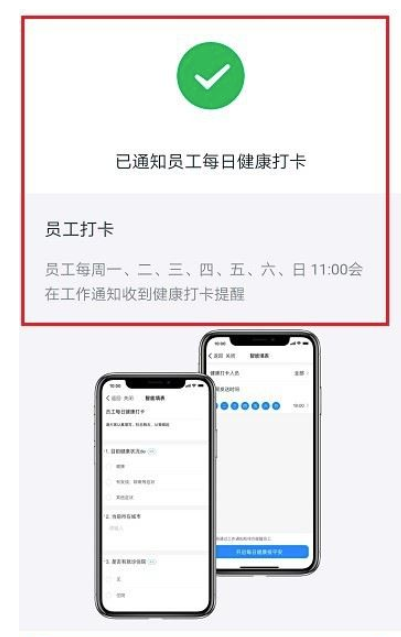 进去之后,点击开启每日健康打卡,主要以选择题的方式了解员工的健康情况