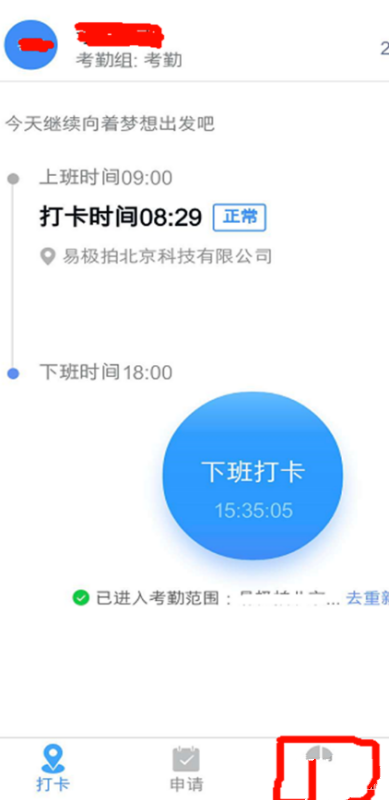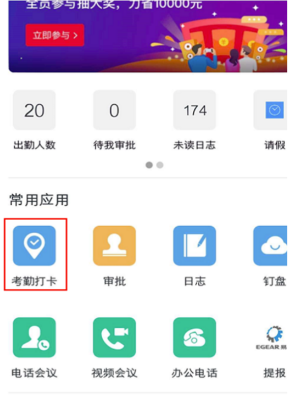 2、然后点击页面上的“考勤打卡”。