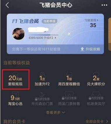 进入飞猪会员中心界面,点击里程抵现