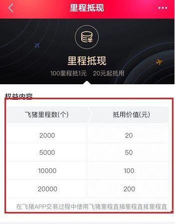 进入里程抵现界面,就可以查看多少里程抵现多少