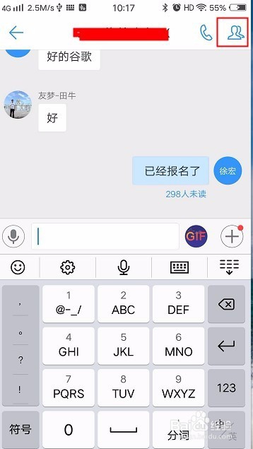 第三步:我们点击群聊天窗口的右上角,有一个群的图标,直接单击,如下图所示: