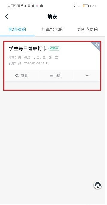 第五步发布之后,就成功让学生每日健康打卡了,如下图所示: