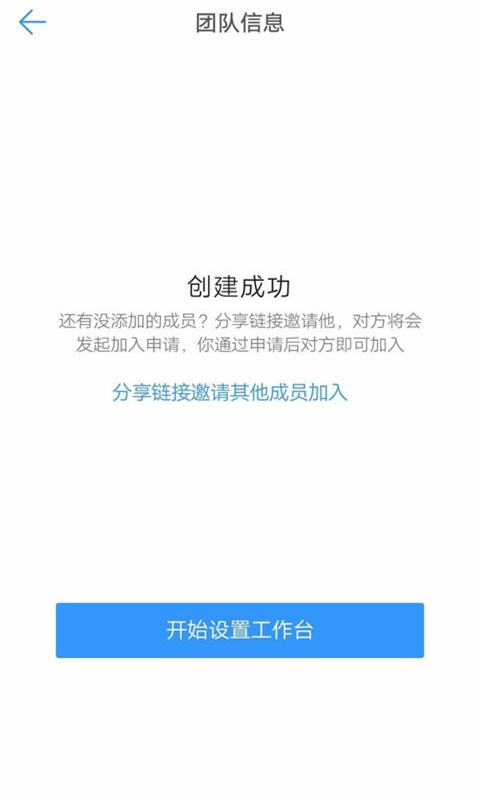 3.在创建成功的提示页面,点击下方的开始设置工作台。