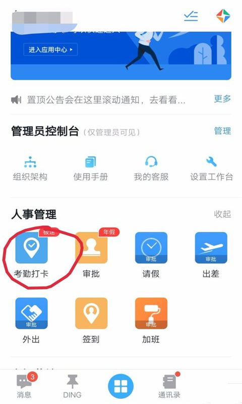 4.在工作台界面点击考勤打卡,来设置考勤打卡。