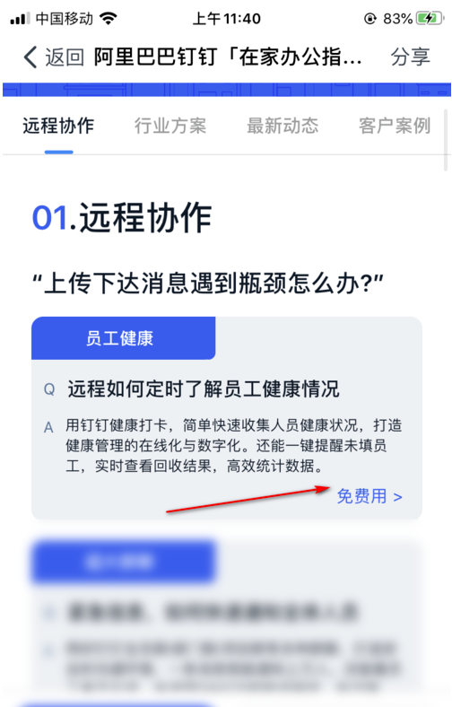 3.然后我们需要点击里面第一个选项,即【员工健康】,免费用按钮。
