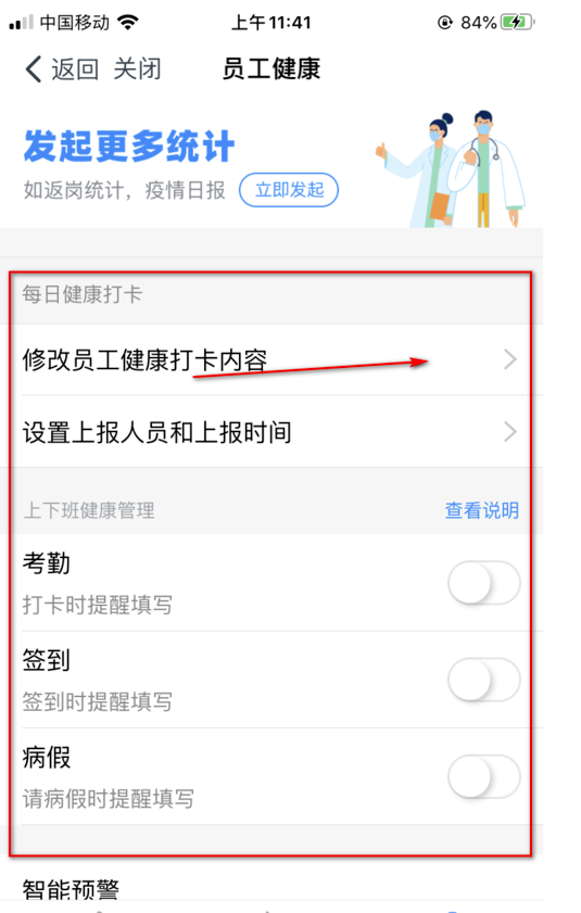 6.如修改员工健康打卡内容、打开时间等信息。