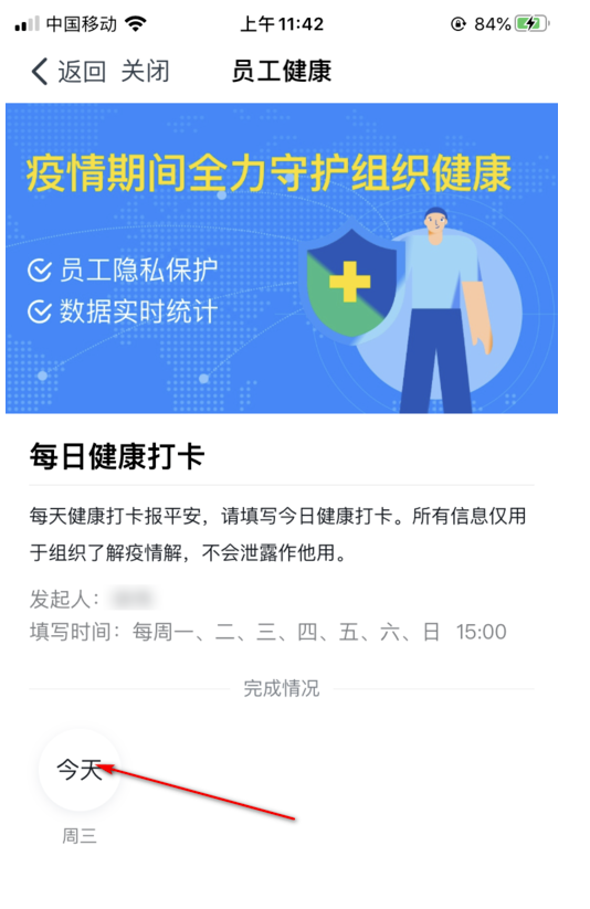 8.作为成员,每天点击【今天】图标,进入打卡。