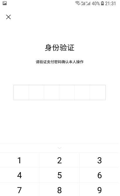 5.在身份验证页面输入自己的“支付密码”,进行验证本人操作。