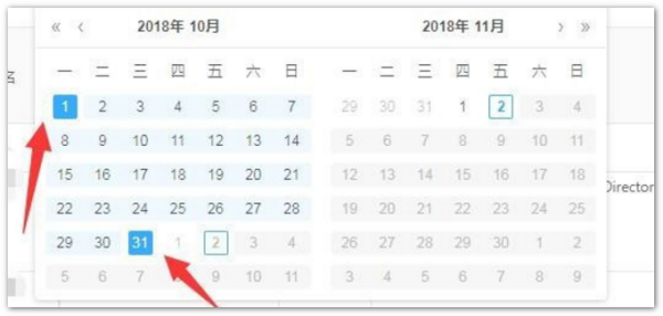 3、在考勤时间中点击选择要导出考勤表的开始日期与结束日期。