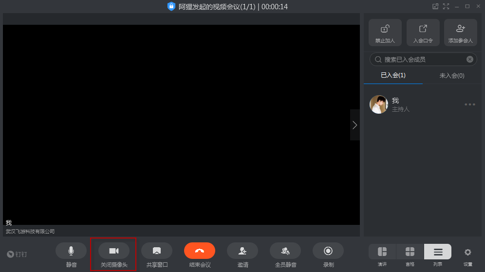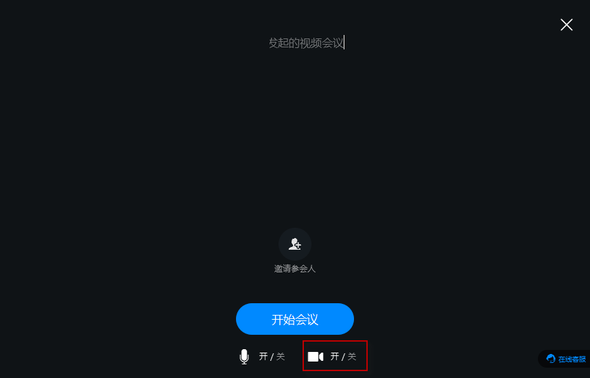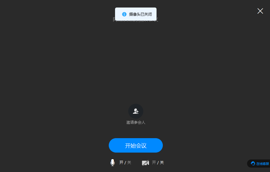 2、进入会议界面,可以看到开始会议下的拍摄图标,点击即可关闭摄像头。