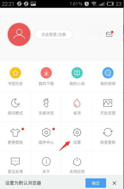 2、再点击【设置】;