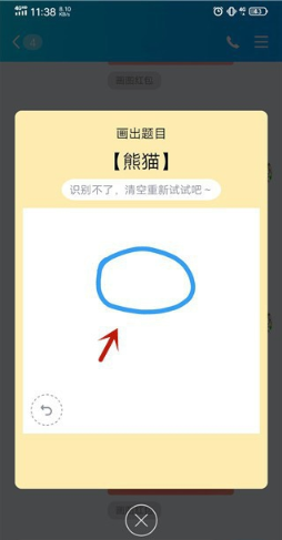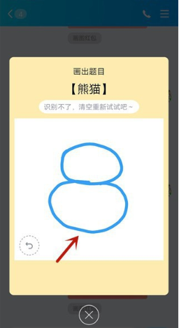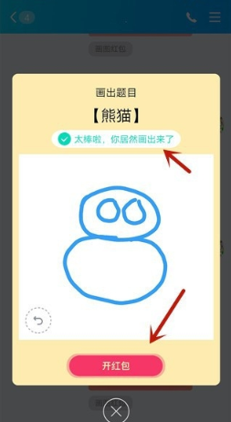 3、然后上面的椭圆画出两个圆圈作为眼睛,就可以识别出熊猫,点击【开红包】按钮。