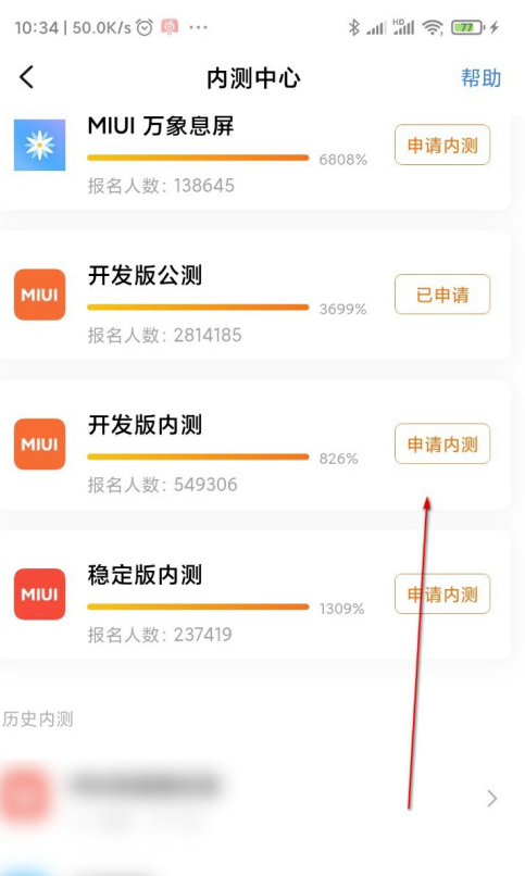4、此时我们可以 看到内测申请,点击进入其中。