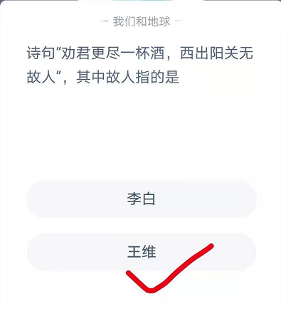 问题1:诗句“劝君更尽一杯酒,西出阳关无故人,”其中故人指的是?