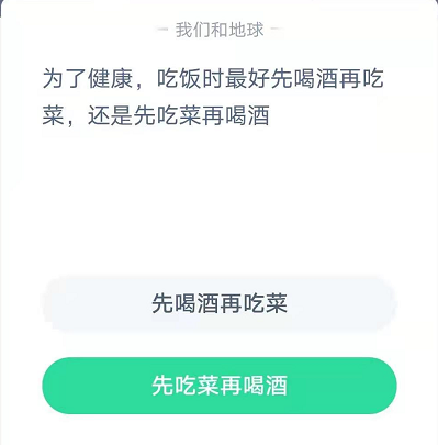 问题2:为了健康,吃饭时最好先喝酒再吃菜,还是先吃莱再喝酒?