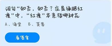 蚂蚁庄园3月30日的问题分别是:槐树的花朵很漂亮那么哪种槐树的花朵是可以吃的?诗句“知否,知否?应是绿肥红瘦”中,“红瘦”本意是指哪种花?下面扒房网小编给大家带来问题的解答,一起看看吧。