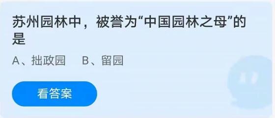 问题1:苏州园林中,被誉为“中国园林之母的是”?