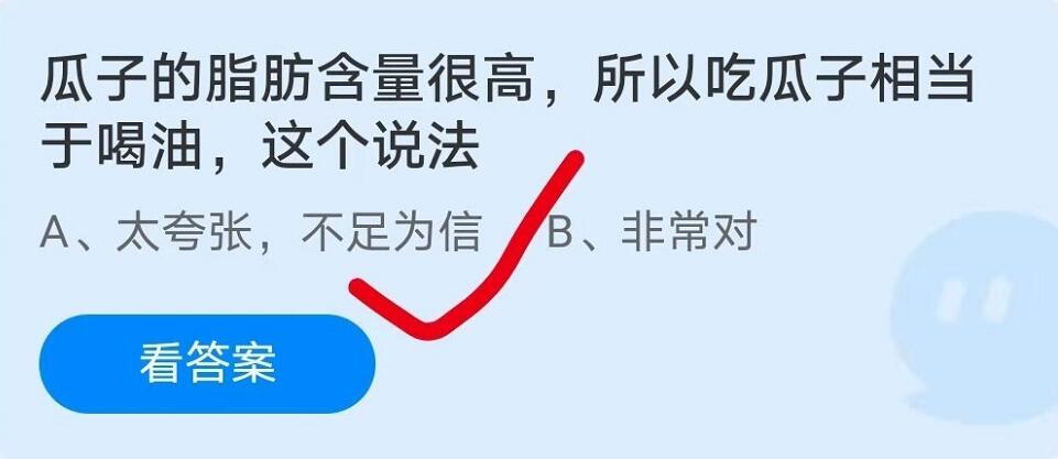 问题1:瓜子的脂肪含量很高,所以吃瓜子相当于喝油,这个说法?