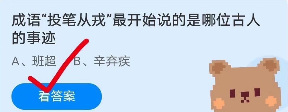 问题2:成语“投笔从戎”最开始说的是哪位古人的事迹?