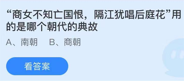 问题2:“商女不知亡国恨,隔江犹唱后庭花”用的是哪个朝代的典故?