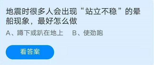问题2:地震时很多人会出现“站立不稳”的晕船现象,最好怎么做?