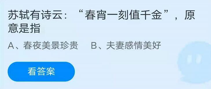 蚂蚁庄园5月19日的问题分别是苏轼有诗云:“春宵一刻值千金”,原意是指什么?我国古代曾以哪种鸟类作为婚娶时的聘礼?下面扒房网小编给大家带来问题的解答,一起看看吧。