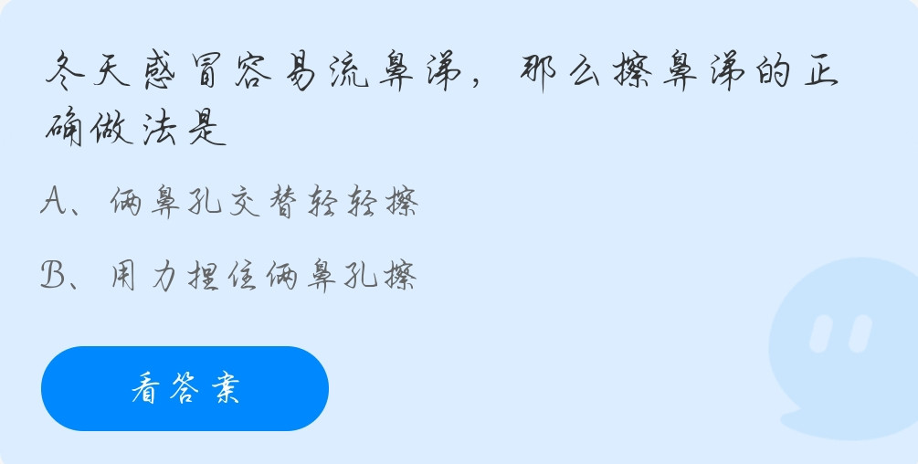 问题1:冬天感冒容易流鼻涕,那么擦鼻涕的正确做法是?