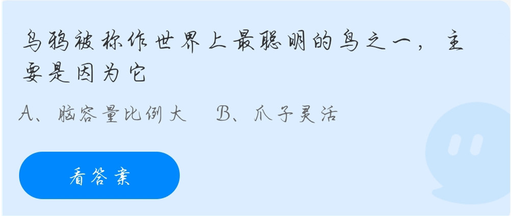 问题2:乌鸦被称作世界上最聪明的鸟之一,主要是因为它?