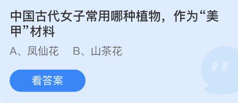 3月2日蚂蚁庄园的小问题分别是:中国古代女子常用哪种植物,作为“美甲”材料?“云想衣裳花想容,春风拂槛露华浓”写的四大美女中的哪一位?许多小伙伴还不知道问题答案,今天扒房网小编就为大家带来了这次的问题答案,希望能够帮助到大家。
