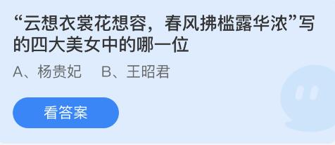 问题2:“云想衣裳花想容,春风拂槛露华浓”写的四大美女中的哪一位?