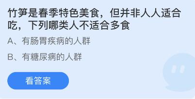问题2:竹笋是春季特色美食,但并非人人适合吃,下列哪类人不适合多食?