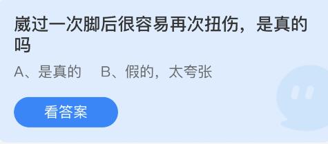 问题1:崴过一次脚后很容易再次扭伤,是真的吗?