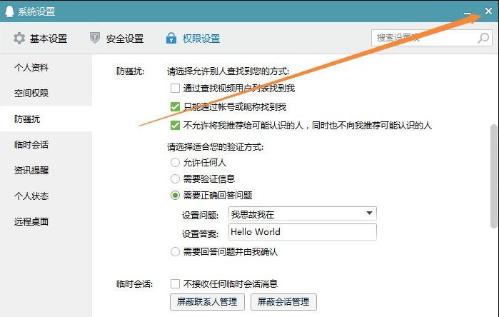 5、完成以上设置之后,我们把设置窗口关掉,系统会自动保存我们刚才的设置,这样子别人就不能把我们推荐给别人了,当然了,别人也不能把我们推荐给别人。