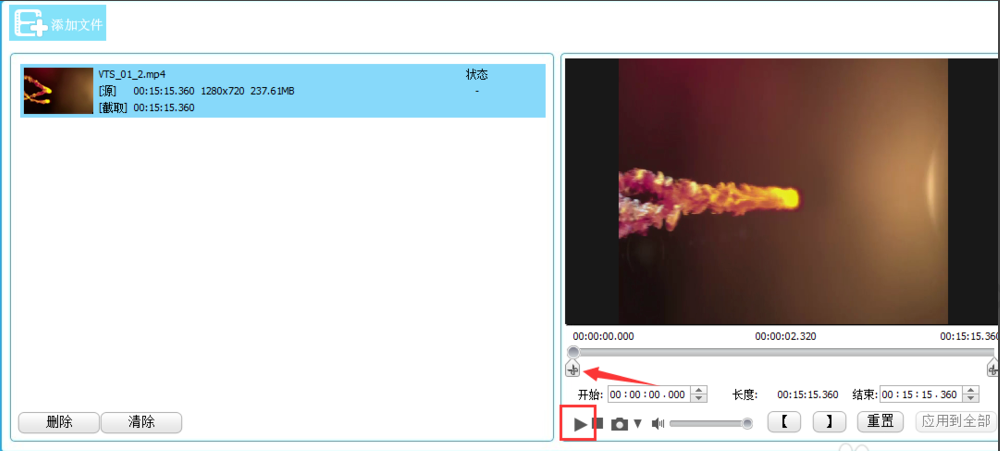 4、我们可以点击播放按钮进行播放,也可以拖动进度条进行切割和快进,如图所示