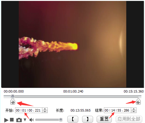 3、此时我们要观察视频的长度是多少,可以从视频的右下角看到视频长度,也可以从开始时间和结束时间观看到,咱们导入的视频是15分15秒。