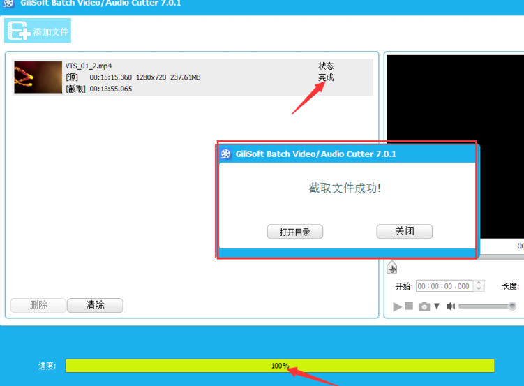 7、都设置完毕后,点击开始,文件就会自动切割,保存到指定的目录下。