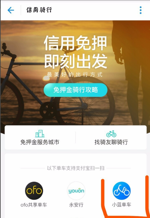 免押金骑行活动需要支付宝用户的蚂蚁信用分在600--750之间才能使用免押金骑行