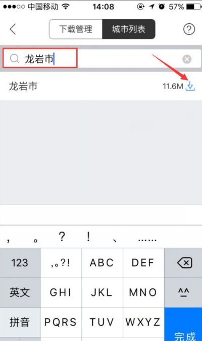 5、当然你也可以直接搜索自己需要的城市,比如小编这里搜索龙岩市,然后在出来的龙岩市右侧点击【下载】;
