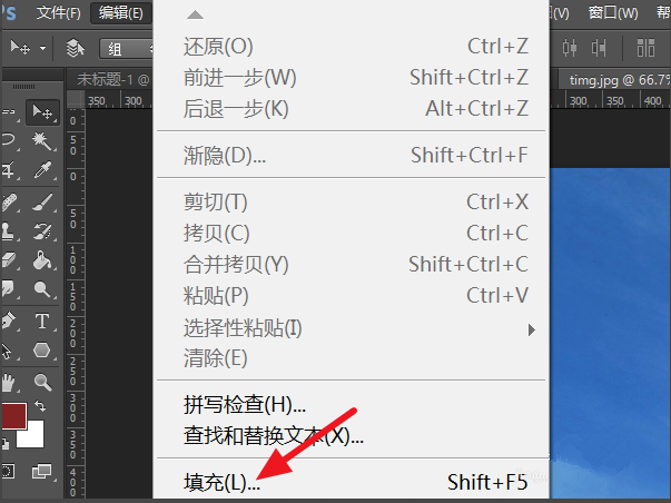 4、接着打开你要加水印的图片,点击【编辑】-【填充】
