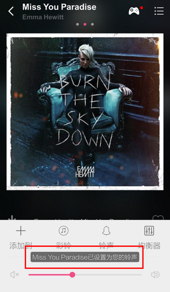 5、当前歌曲设置铃声成功