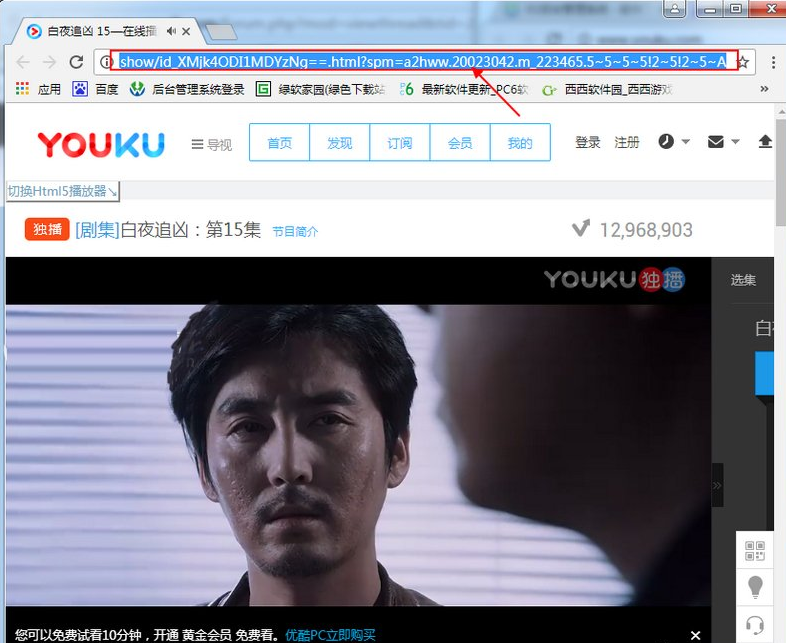 1、打开需要下载的网页如:优酷白夜追凶,将网页链接复制;