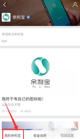 3、点击“余利宝”进入下一界面,我们找到右上角的请关注,然后请关注,请关注成功后就会进入下一界面(如下图2所示),此时我们进入当前界面左下角的“我的余利宝”;