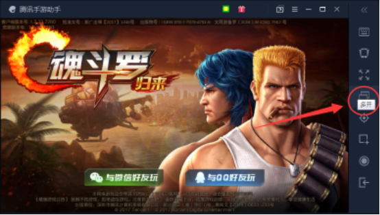 2、运行游戏后会弹出一个腾讯手游助手游戏窗口,在这个窗口右侧的功能列表中就可以看到“多开”的功能了;