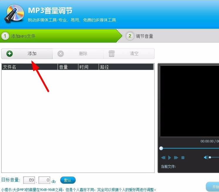 2、在“MP3音量调节”界面点击”添加“按钮来添加音乐文件