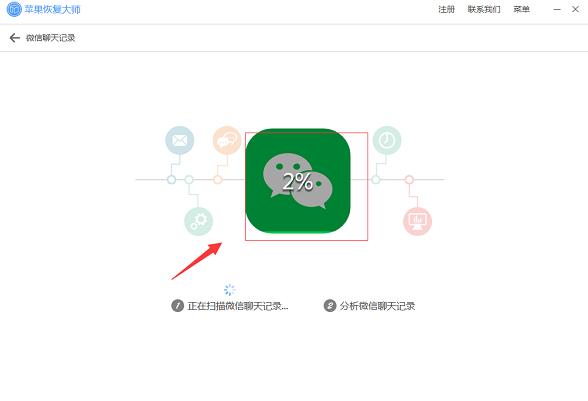 5、此时进入扫描界面了。在界面中大家需要耐心等待一会,扫描的时间其实是和微信内存有关系的,内存大的扫描时间就长一些,反之如此。