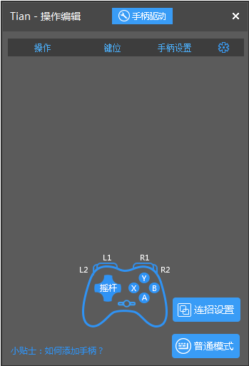 打开手柄模式后我们就可以开始设置按键了,设置按键的方法和键盘的类似。