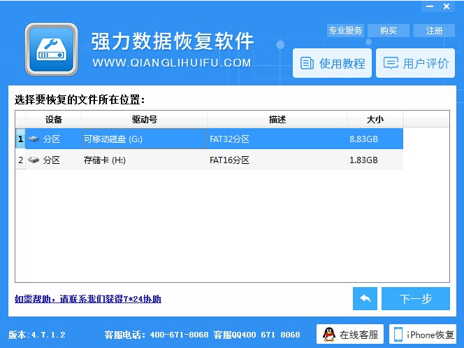1、打开强力数据恢复软件,选择相应数据恢复模式“U盘手机相机卡恢复”。